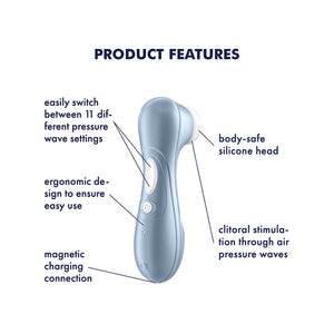 The Pro 2 uses Satisfyer’s proprietary Air Pulse Technology to deliver incredibly sensations directly to your clitoris. Feel the incredible pressure waves stimulate your clitoris without direct contact as you control the 11 exciting levels to take you from tasty teasing to extravagant bliss.