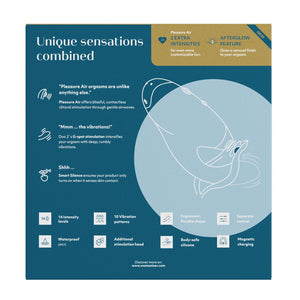 The vibrations and air pulsations are controlled separately and easily via soft-touch buttons on the top of the stimulator head. With the Smart Silent mode, the DUO 2 will only turn on when in direct contact with your skin, keeping the already quiet rumbles even quieter. With the Afterglow feature, press the power button briefly after climax, bringing the intensity of the DUO 2 down to level 3 for a relaxing finish.